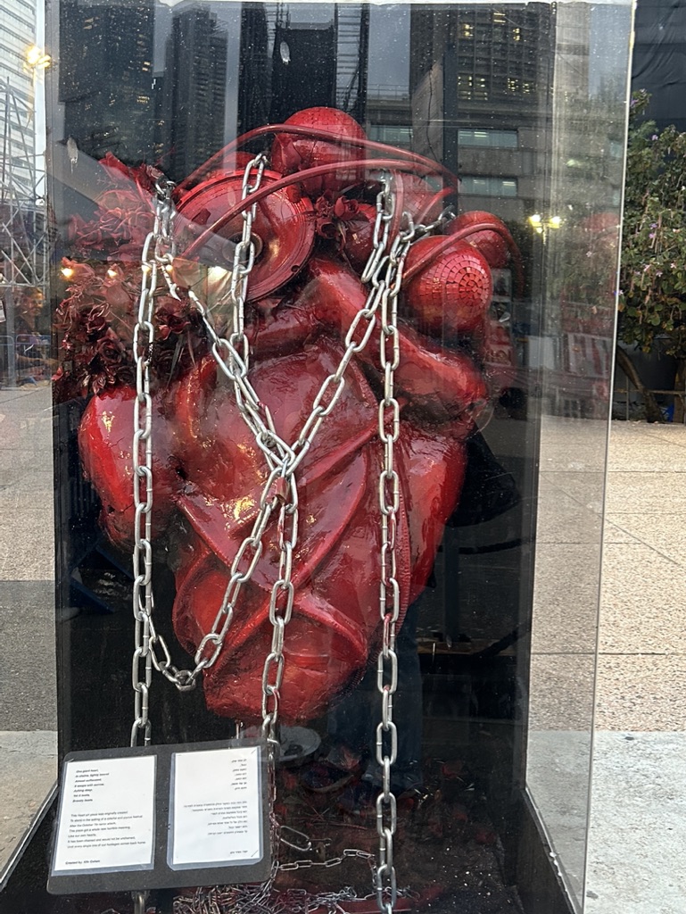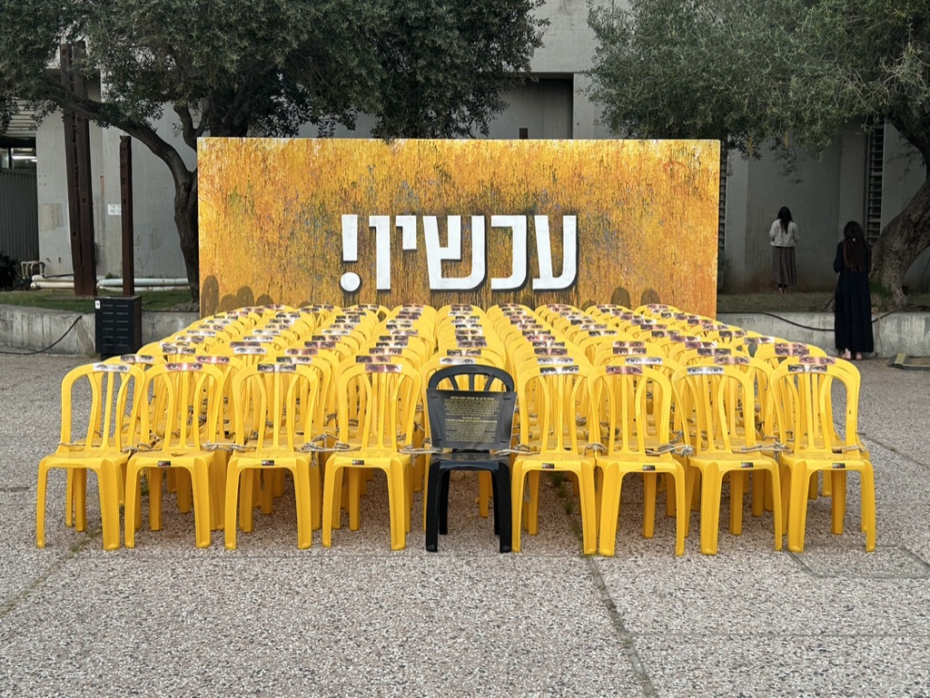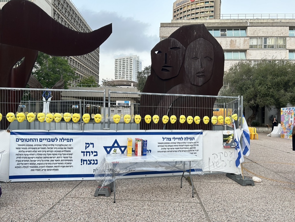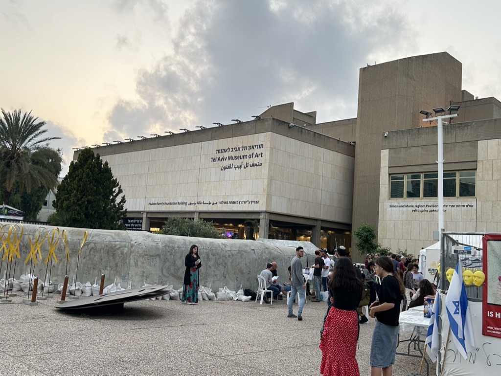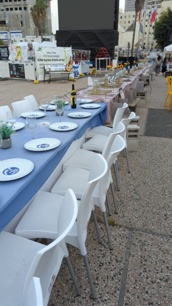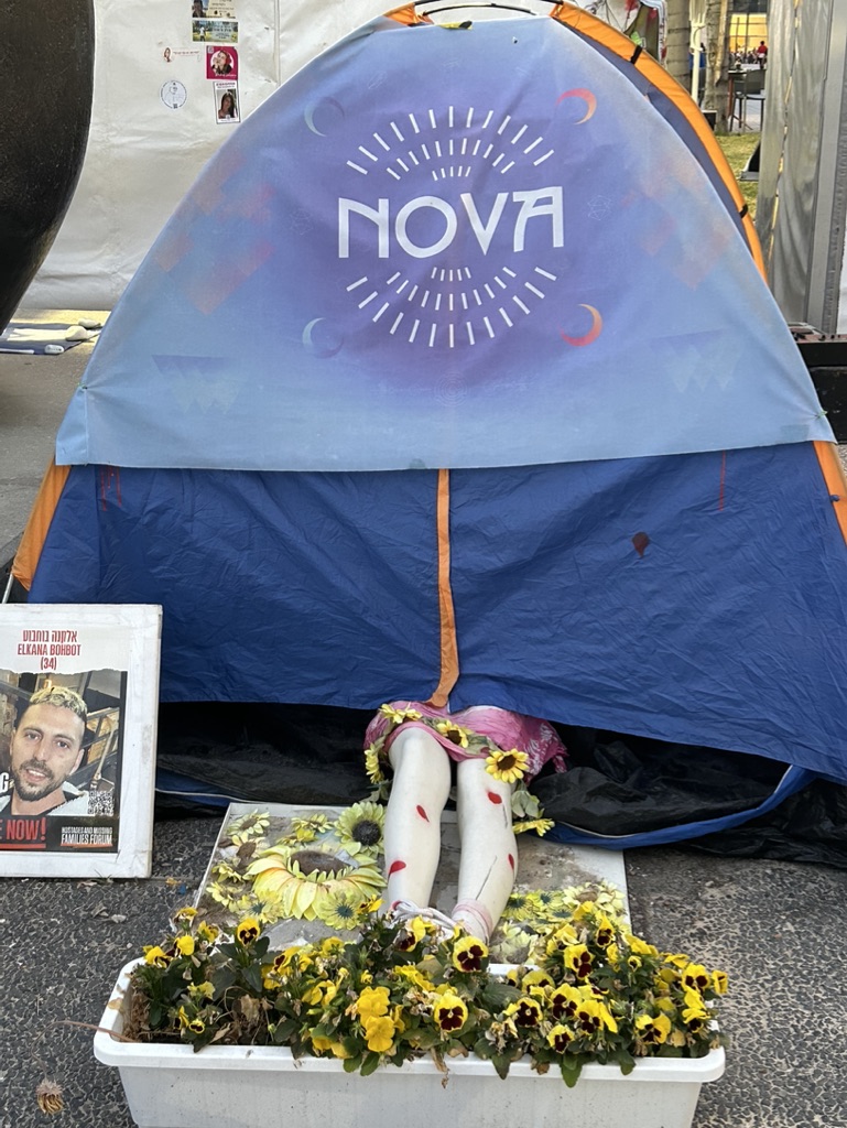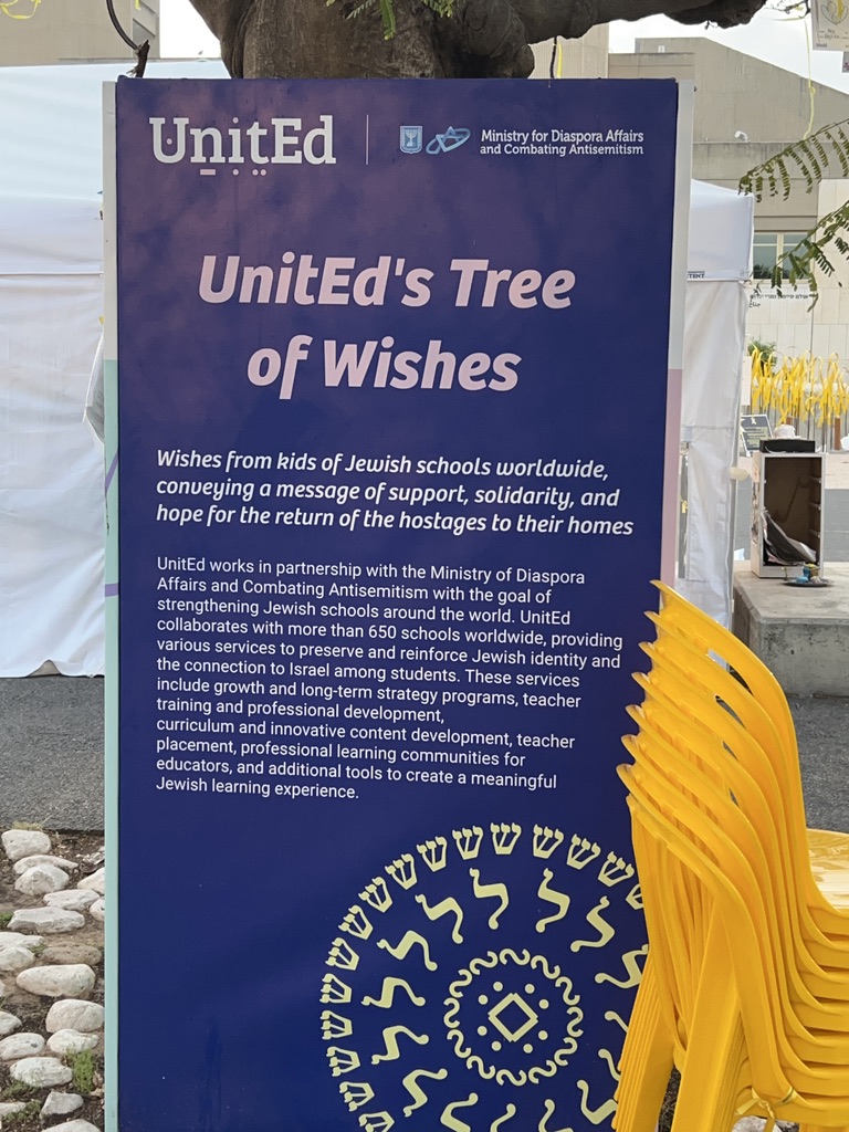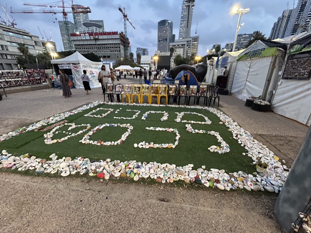 The square is located across the street from government military buildings similar to the Pentagon. When we arrived, it was eerily quiet. I am going to share the myriad of photos we took as we walked silently around the square, noting all of the art installations dedicated to peace and rescuing the hostages. There is also video capturing the experience of October 7th. It is a political space, a solidarity space, a space for remembrance, and a space for hope.