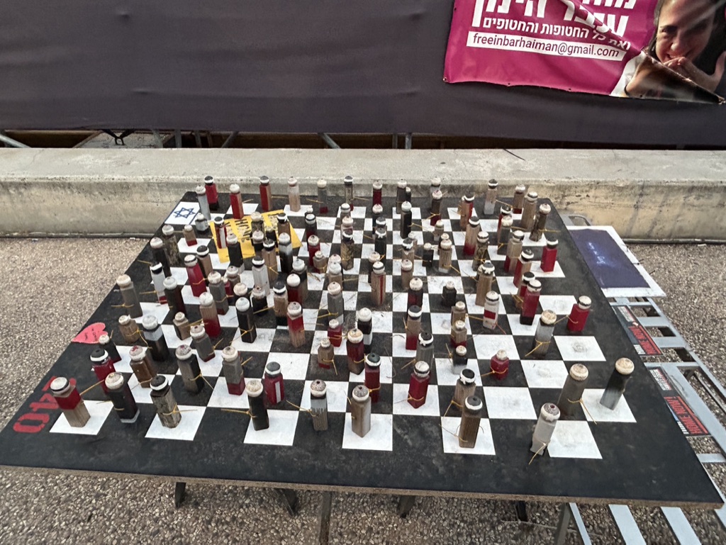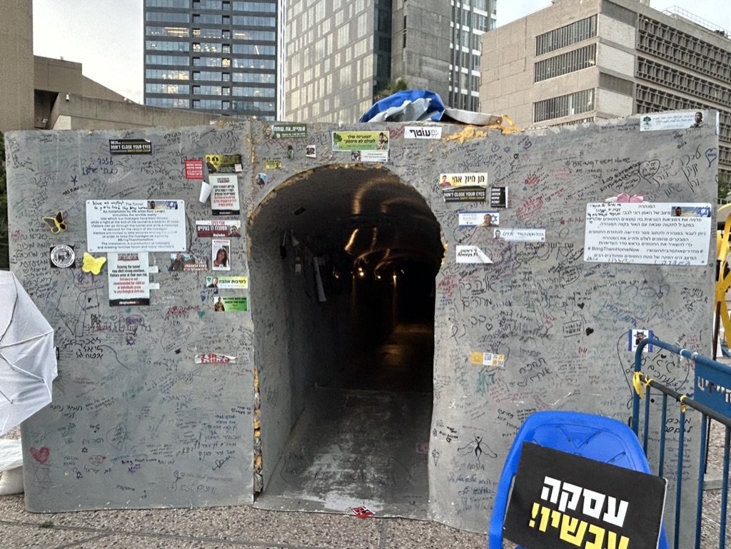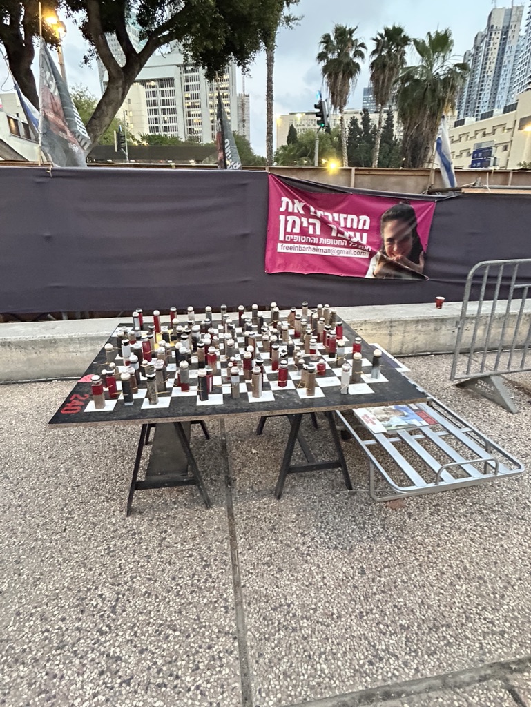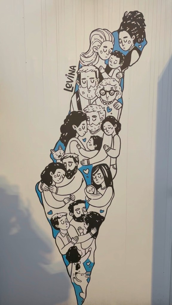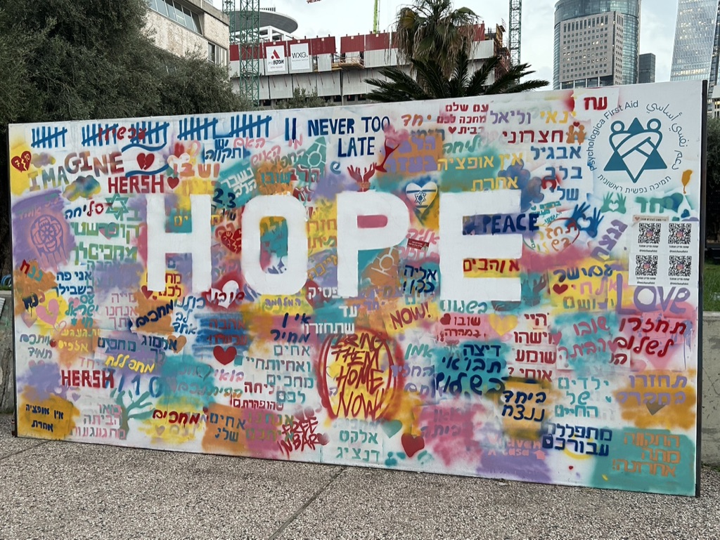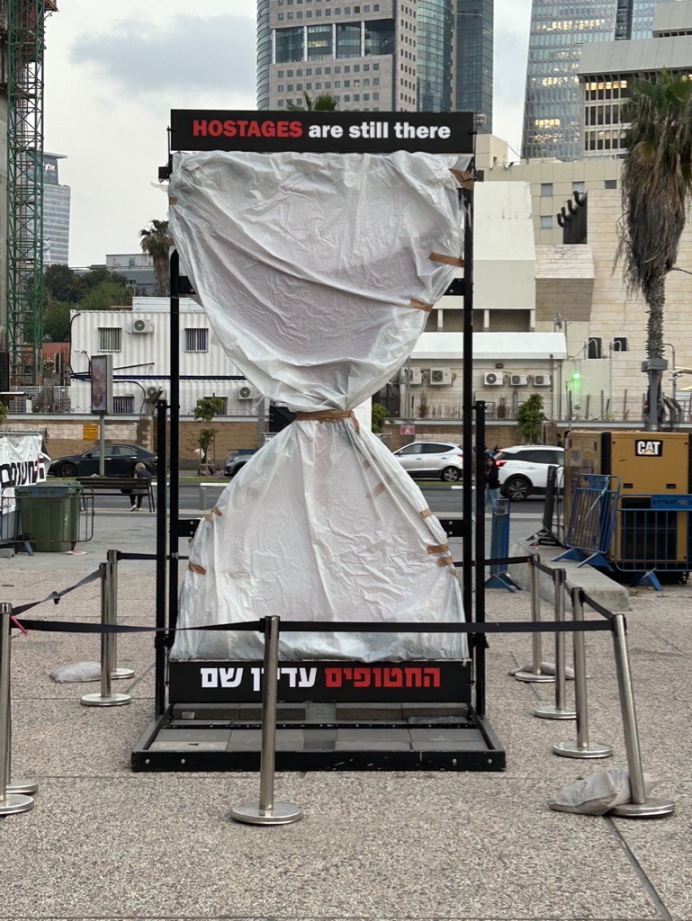 If you recall, this morning (EONS ago) we had hopes that Blinken’s trip would lead to an end to the fighting and a plan to return the hostages as well as begin rebuilding in Gaza. We were told by our guide Y, king of improv, that there might be mass protests at Hostage Square, or it might be quiet. But we were on our way to witness, to be in solidarity, and to Hope.